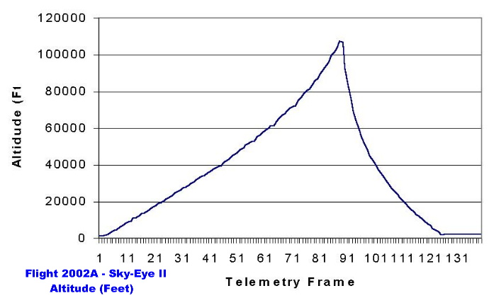 To get this chart, I converted the raw ADC counts to volts, then calculated, based on the circuit design and catalog data for the sensor, the pressure in millibars, and then calculated the altitude in feet using the 1976 Standard Atmosphere. The end points are pretty close: Augusta is in the 1500 foot altitude range and the Touchdown point was 2200 feet or so, so I am pretty confdent that these are valid numbers. Best Regards, Tom Dawson - WB3AKD |