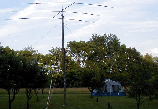 The N3GMW 3-Element A-3 Tribander Rebuilt By Norm Styer, AI2C of Clarkes Gap On Top Of Tom Garasic, NA4MA's 28-Foot Extension Ladder In The Orchard
