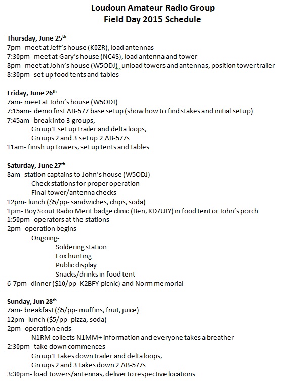 Loudoun Amateur Radio Group's K4LRG 2015 Field Day Exercise Friday - Saturday - Sunday June 26, 27, and 28, 2015 Always The 4th Full Weekend In June 38668 Sierra Lane, Lovettsville, VA 20180 Test Your Prep |