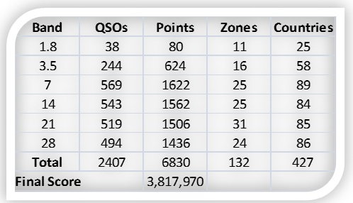 My planning began over a year ago, actually, for this WW just completed. I had numerous examples since moving to my QTH in 2010 that illustrated I needed better hearing capabilities on 160m and 80m if I was to make a reasonable number of contacts. My "L" shaped lot, location of transmit antennas, and the 19.2 KV power line traversing close to E-to-W on one side of my property, all but eliminated from consideration a beverage system. So I began seriously considering an active four-square arrangement. I designed a suitable active antenna preamplifier, with one prototype completed, and had begun working out the details of the switching matrix to switch receive into four different directions, when I began having to travel extensively. I knew I had no chance of completing my own design in time for the 2013-14 contest season so I purchased the DX Engineering four-square system ( not the "full-up" system but most of it ). I completed the installation of the four-square in September. It is arranged with the diagonals of the square hitting Europe, South American, New Zealand, and Japan. Each side of the square is 70 ft. The addition of the four-square completes my plans for antennas at my location. While I would like to have more antennas, an additional tower, and the like, I have done as much as I can without looking like the "Beverly Hillbillies". My XYL may not agree with that assessment, believing perhaps that the QTH already looks that way - Hi. For the CQWW I used a Cushcraft XM-240 at 80 ft for 40m, a Force12 C31XR at 71 ft covering, 10, 15, and 20m, a DX Engineering 80/40m vertical with 90 radials on 80m, and an inverted "L" for 160m. My pre-contest plans included getting more rest throughout the week. I even took a nap, a recommendation from W4AU, the afternoon before the contest began. In total these things paid dividends and allowed me to sleep one hour in the first 32 hours of the contest. Prior to the contest I also made crib sheets for amplifier tuning settings for each band of operation and a few shortcuts that I planned to use in the contest logger, N1MM. It goes without saying that having a firm grasp of N1MM operation is essential when the QSOs are really rolling. ![]() |